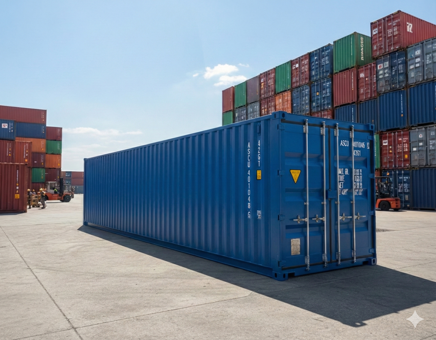 Sterke 40FT zeecontainers van hoge kwaliteit, wind- en waterdicht, direct leverbaar in meerdere RAL-kleuren.